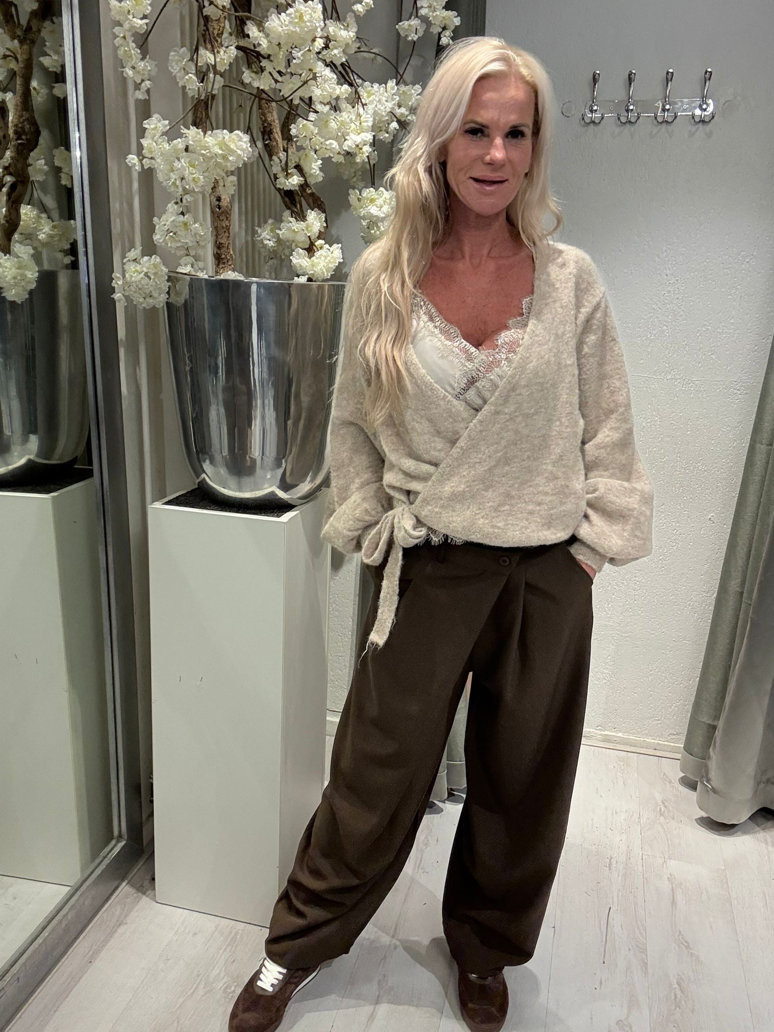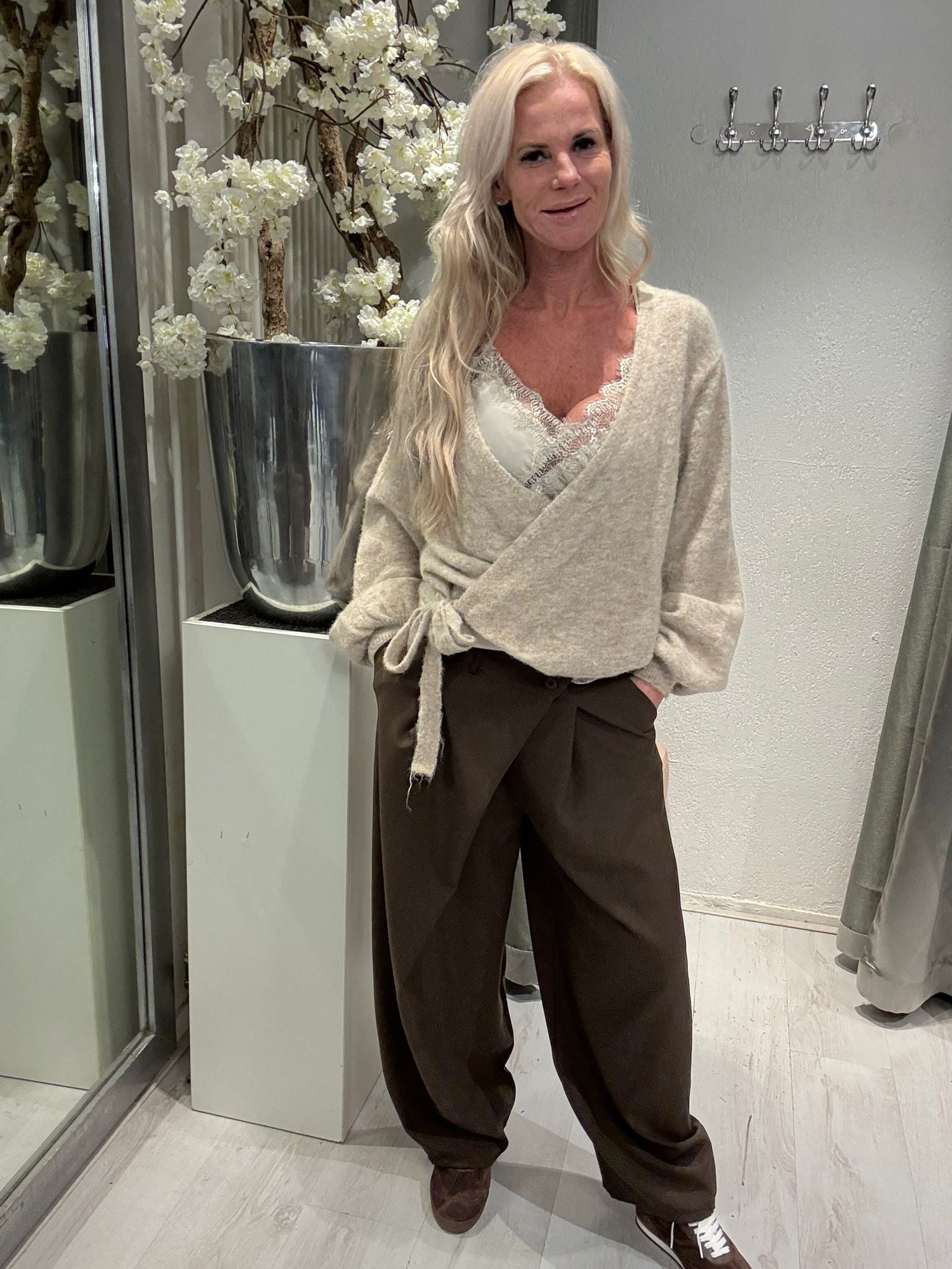Ontdek de ultieme combinatie van comfort en stijl met deze ruime balloon broek met overslag in een prachtige donkerbruine kleur. Dit is het model wat je nu overal ziet, maar dan in een nettere variant!