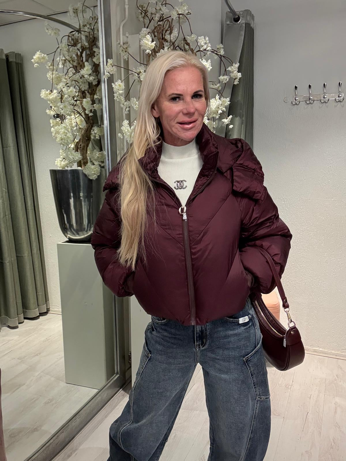 Ontdek de stijlvolle Jas Isabelle in Bordeaux - De perfecte korte winterjas voor de moderne vrouw