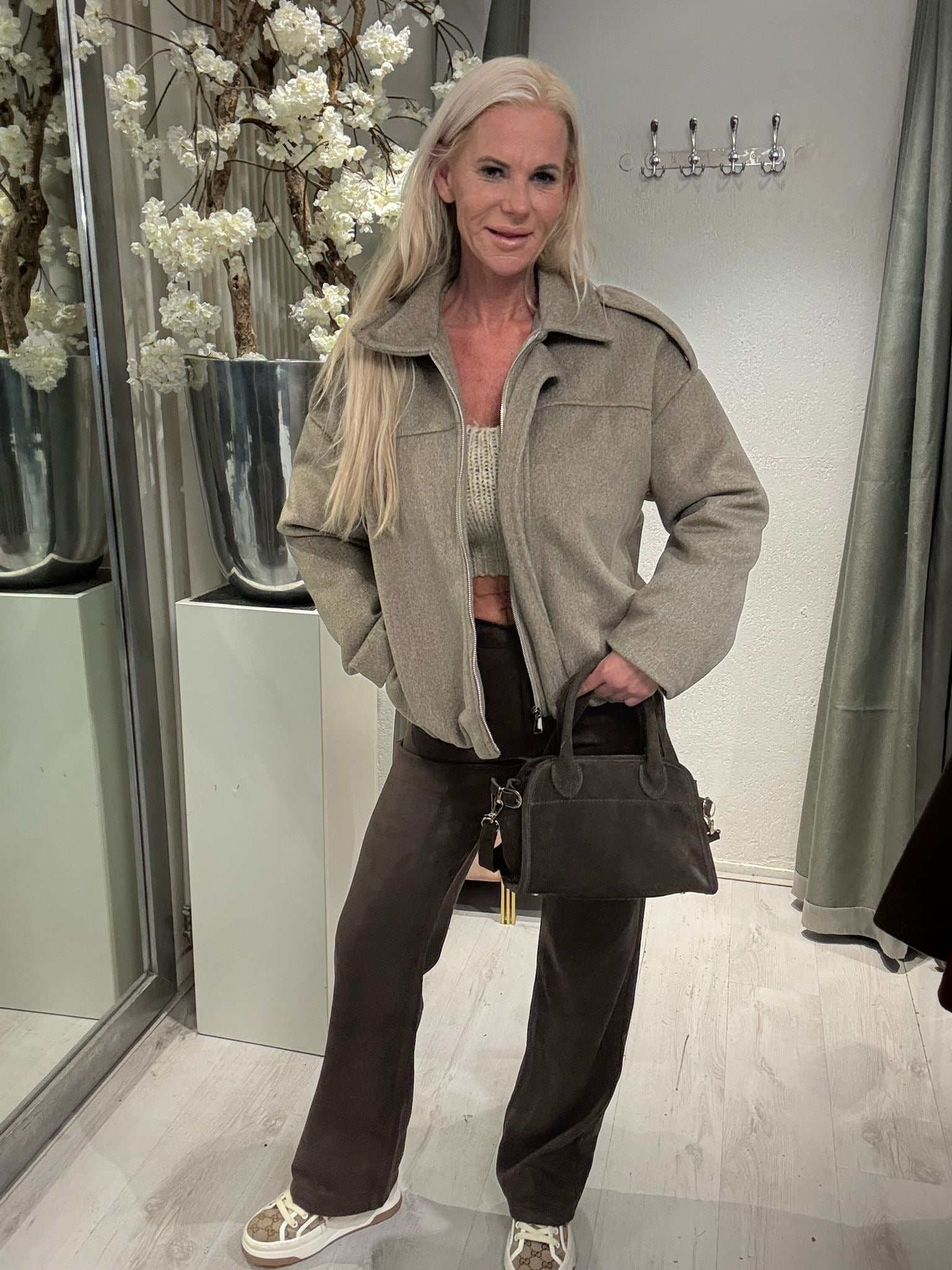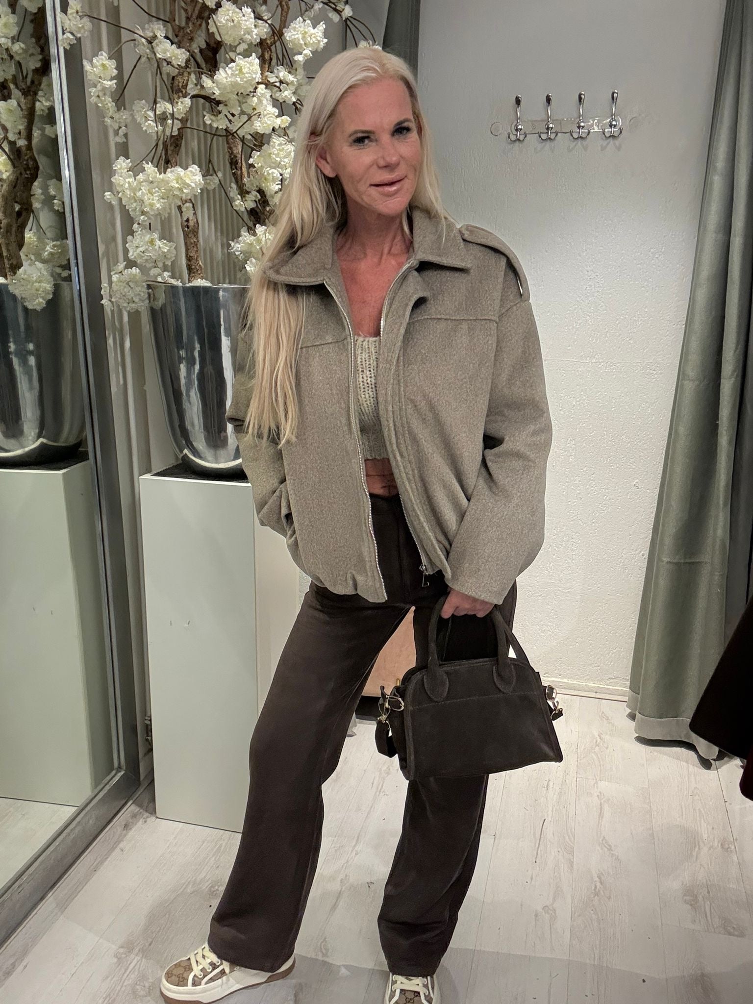 Deze stone/zand jas is de ultieme neutrale basis voor je garderobe. Met een handige rits en een tijdloze kleur die bij alles past - de perfecte keuze voor elke dag.