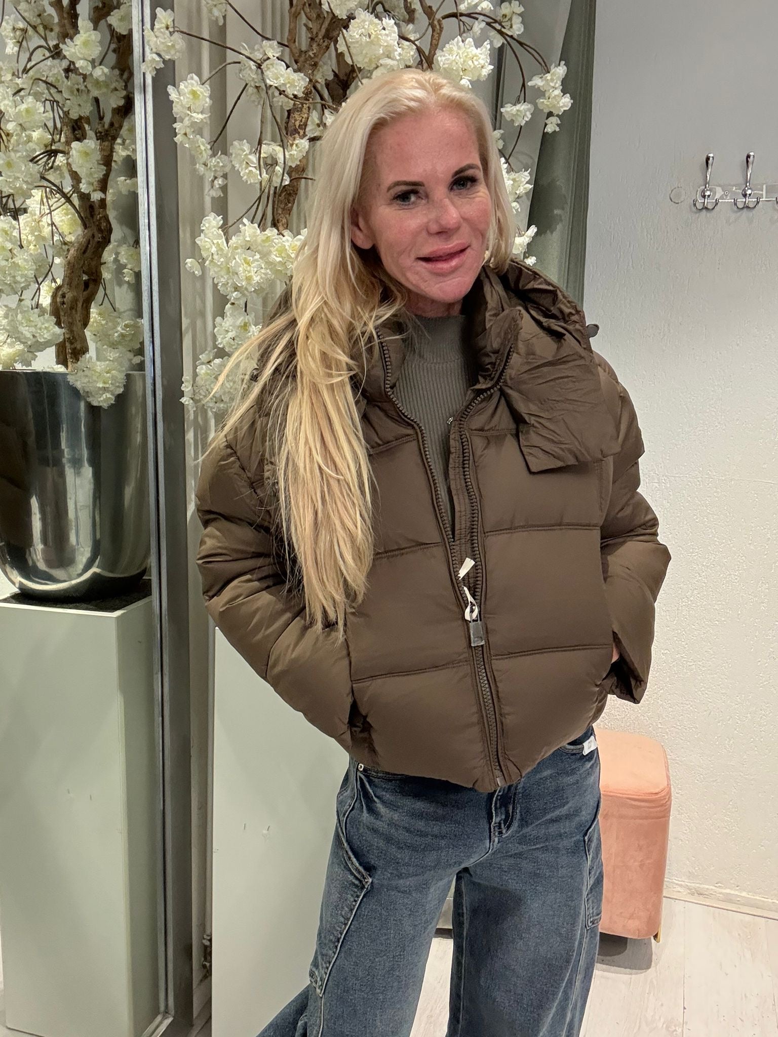 Deze elegante korte winterjas in rijke taupe bruine kleur combineert warmte, comfort en stijl in één prachtig ontwerp. Met zijn praktische capuchon en korte model is deze jas perfect voor de actieve vrouw die niet wil inboeten op stijl tijdens de koudere maanden.