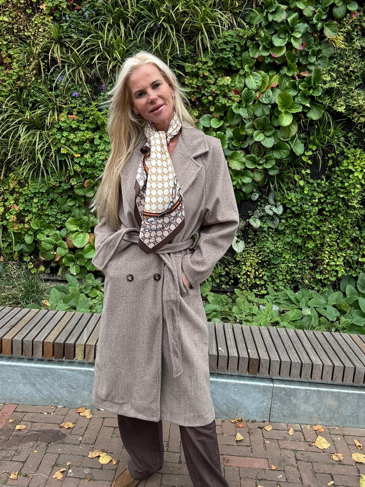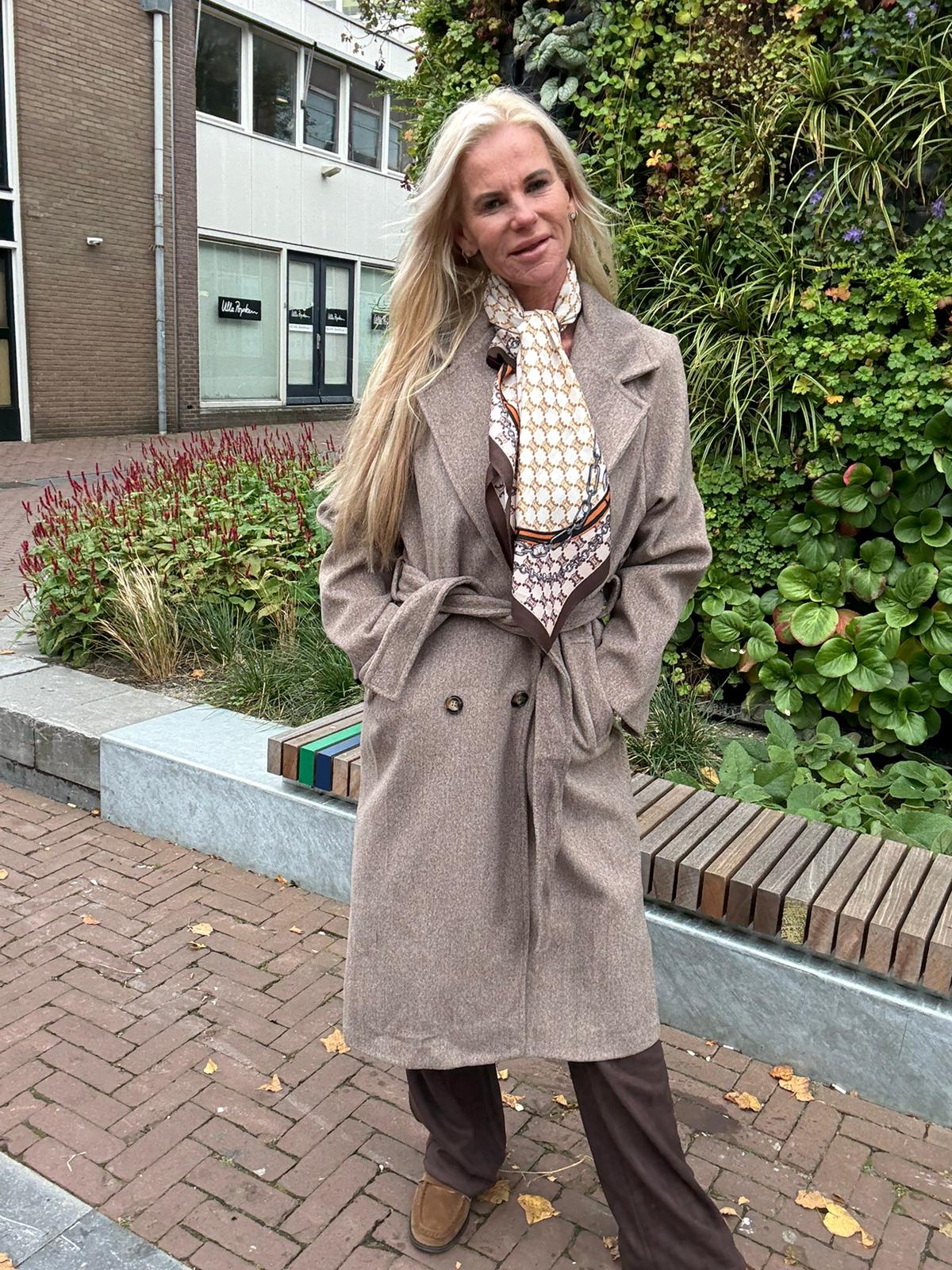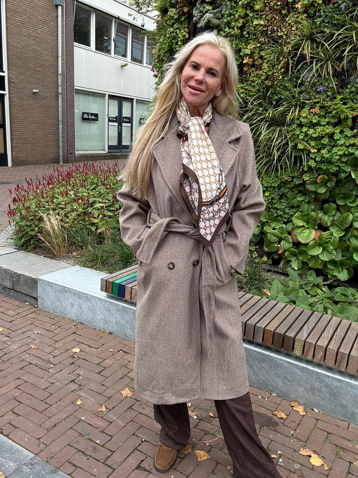 Elegante mantel Clarissa met een comfortabele pasvorm. Deze stijlvolle mantel is geschikt voor verschillende maten en biedt een perfecte combinatie van comfort en elegantie.