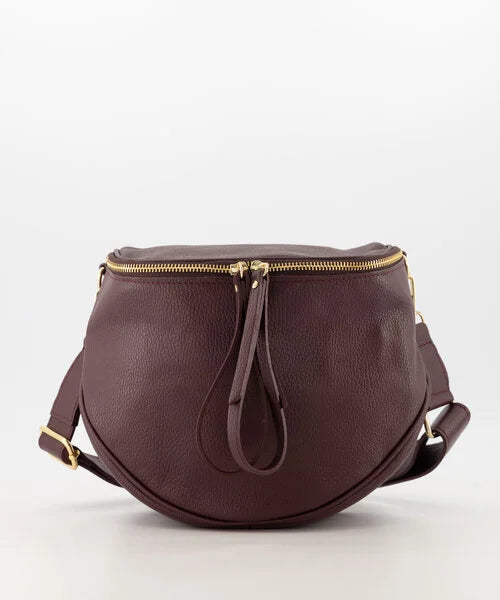 Leren fanny pack met een vakje aan de binnenkant met ritssluiting. De tas komt met een breed verstelbaar hengsel.