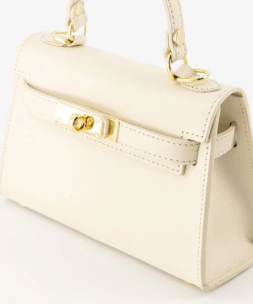 De handtas Grace Beige gemaakt van echt leer. De tas heeft op de voorkant een draaisluiting en is afgewerkt met goudkleurige hardware. Dankzij de afneembare en verstelbare hengsel kan de Grace tas ook als crossbody gedragen worden. De tas heeft een hoofdcompartiment met aan de binnenzijde een ritsvakje.