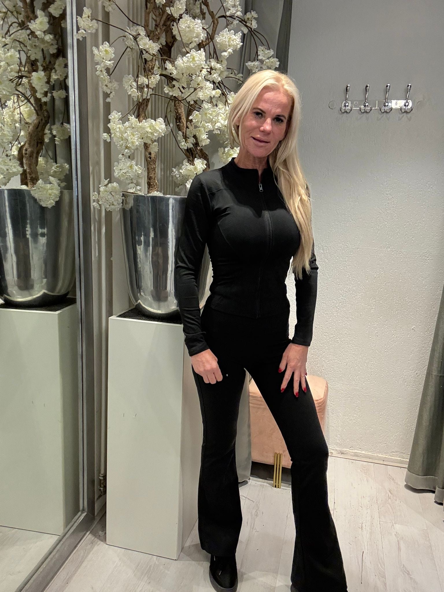 Deze zwarte sportset is de ultieme keuze voor de moderne vrouw die van tijdloze elegantie houdt. Zwart is de meest veelzijdige kleur die bij elke gelegenheid past - van sportschool tot boodschappen doen!